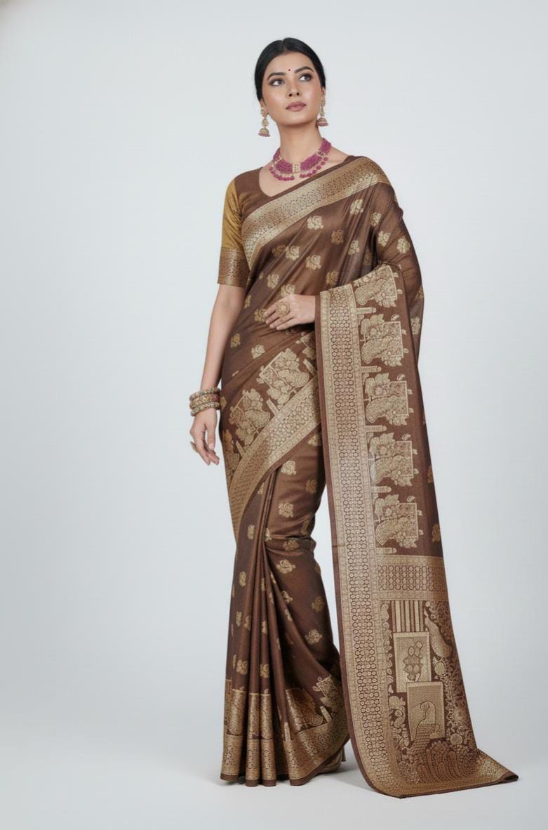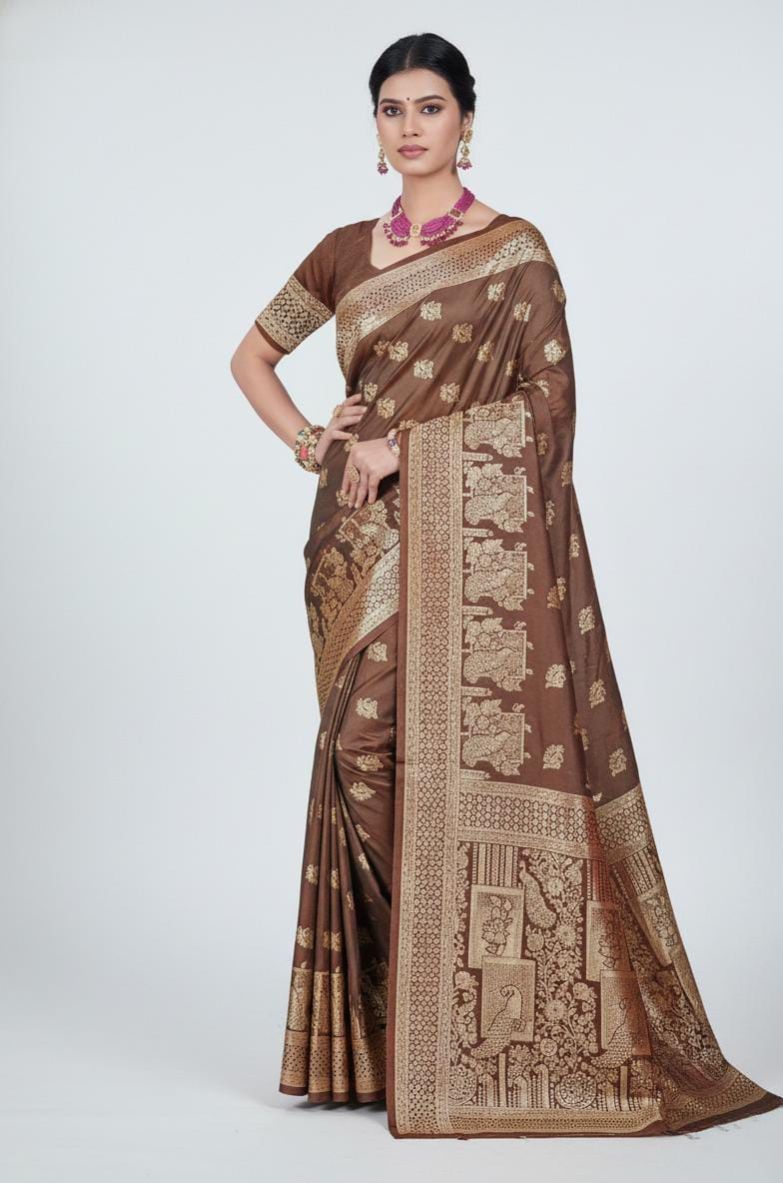 latest collection of traditional silk saree designs at Taneira. Explore handwoven, ikat, & pure silk sarees for women